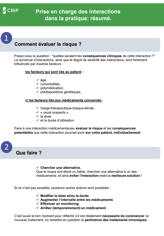 Dans la série d’e-learnings «Interactions», vous apprendrez à gérer les interactions médicamenteuses en toute confiance à l’aide d’une liste de conseils pratiques. Nous vous rappelons également quels sont les médicaments réputés pour leurs interactions potentielles (les « usual suspects »).